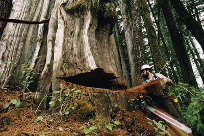 Next comes felling, or cutting down trees. To fell a tree, a worker makes four cuts: a top, bottom, back and felling cut. The goal is to leave a sufficient hinge of wood between the bottom cut and felling cut. This reduces tree kickback and provides greater control over where the tree will fall. When a team of loggers is working together, the tree faller usually shouts that "Timber!" warning that you're familiar with to alert fellow workers that a tree is about to fall.